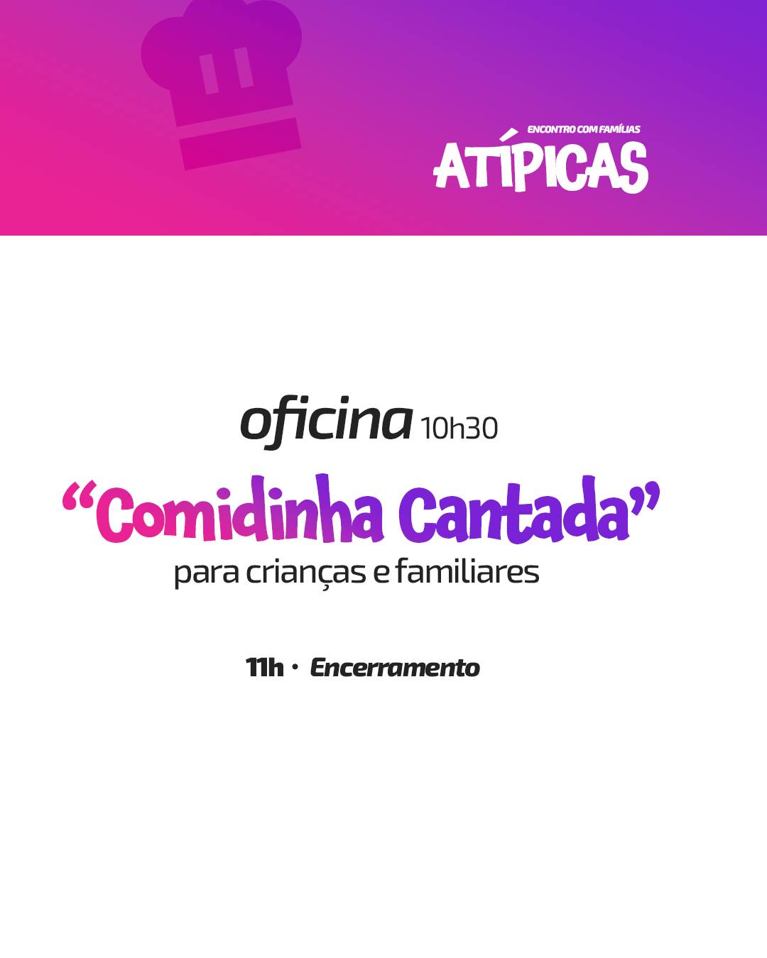 Também haverá oficinas recreativas durante o encontro e uma atividade especial com as famílias.
