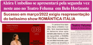 Alzira Umbelino se apresentará pela segunda vez neste ano no Teatro Feluma em Belo Horizonte